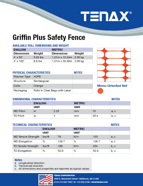 Griffin Plus Safety Fence is the newest addition to the Tenax Construction and Ground Protections line.