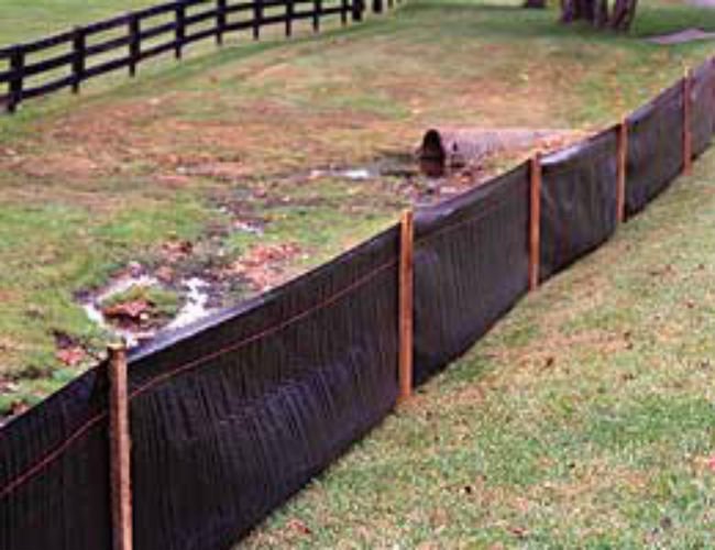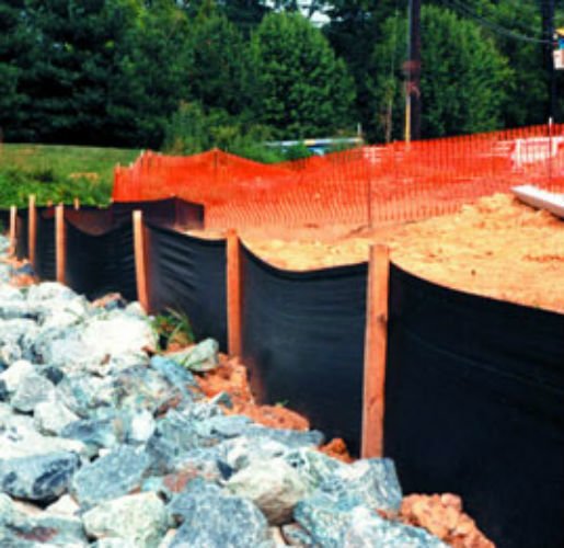 Ideal barrier for sediment control around construction sites. Woven geotextile is designed to allow drainage while retaining soil and sediment run-off.